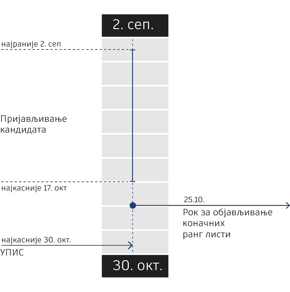 – најкасније до 25. новембра 2025. године – упис кандидата;